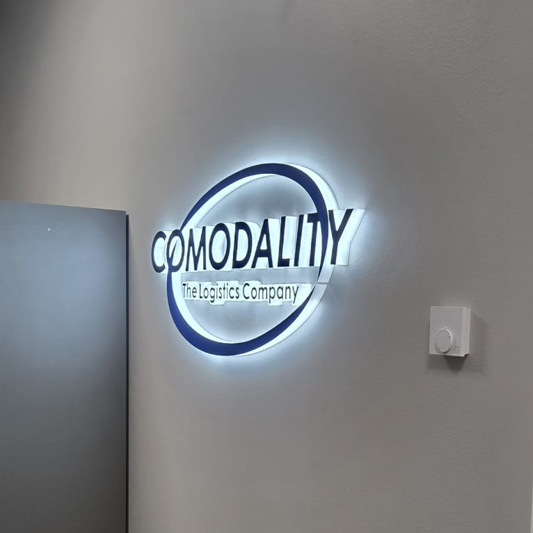 Taaksepäin valaistu valomainos sopii hyvin esimerkiksi: