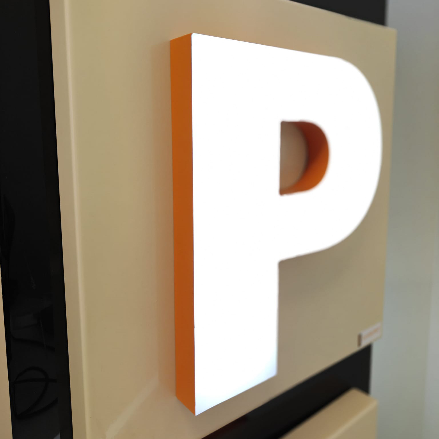 Erityisesti tummat tai mustat logot hyötyvät tästä ratkaisusta, koska kirjaimen pinta ei muutu valohehkun vuoksi valkoiseksi tai läpikuultavaksi pimeällä.