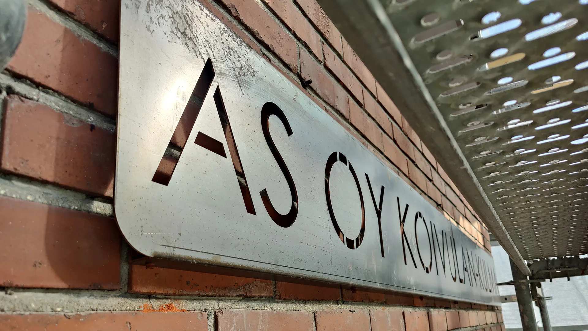 Tilauksesta onnistuvat myös erikoisemmat materiaalit, kuten corten-teräs, harjattu teräs tai messinki, jolloin kyltti saa aivan erityisen ja arvokkaan ulkonäön.
